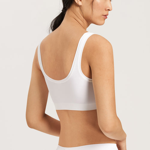 Sporty and stylish, the HANRO Touch Feeling Crop Top can be a versatile addition to anyone's closet. Tailored from a breathable mix of state-of-the-art microfiber and elastane for stretch and fit, this crop top features wider straps and fine rib trim around the neckline and straps to give a smooth look, while a stretchy hemmed bottom adds support for the bust. A stylish everyday basic for under-pinning or lounge. The Touch Feeling Collection is made from state-of-the-art, luxurious microfiber with a buttery soft and delicate surface. Like cashmere, it can pill when there is excessive rubbing.