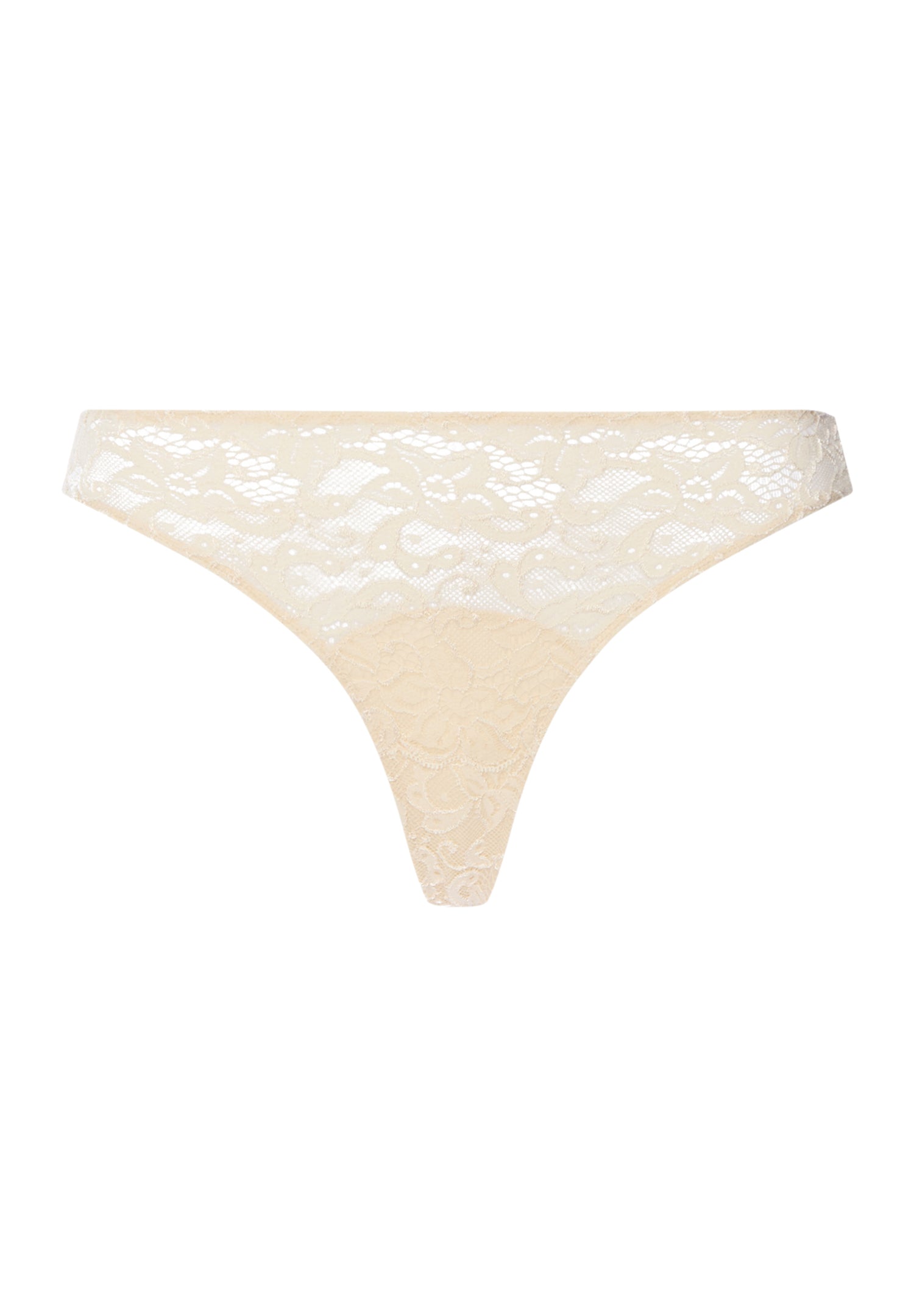 Romantic and feminine, the Luxury Moments thong features allover French Textronic lace for subtle sheerness and all day comfort. A mid rise waist and minimal back coverage make this style ideal for fitted clothing while lace edging provides a smooth profile.