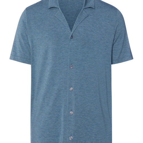 This extraordinary short-sleeved shirt is made of elastic viscose with an extra soft, flowing drape for high-quality look with maximum comfort. The full-length button placket and the elegant V-collar makes this modern favorite look like a light summer shirt at first glance. Temperature-regulating, skin-friendly and easy to care for are the advantages of the single jersey MADE IN AUSTRIA. Wear the contemporary style hybrid as daywear, nightwear or loungewear.