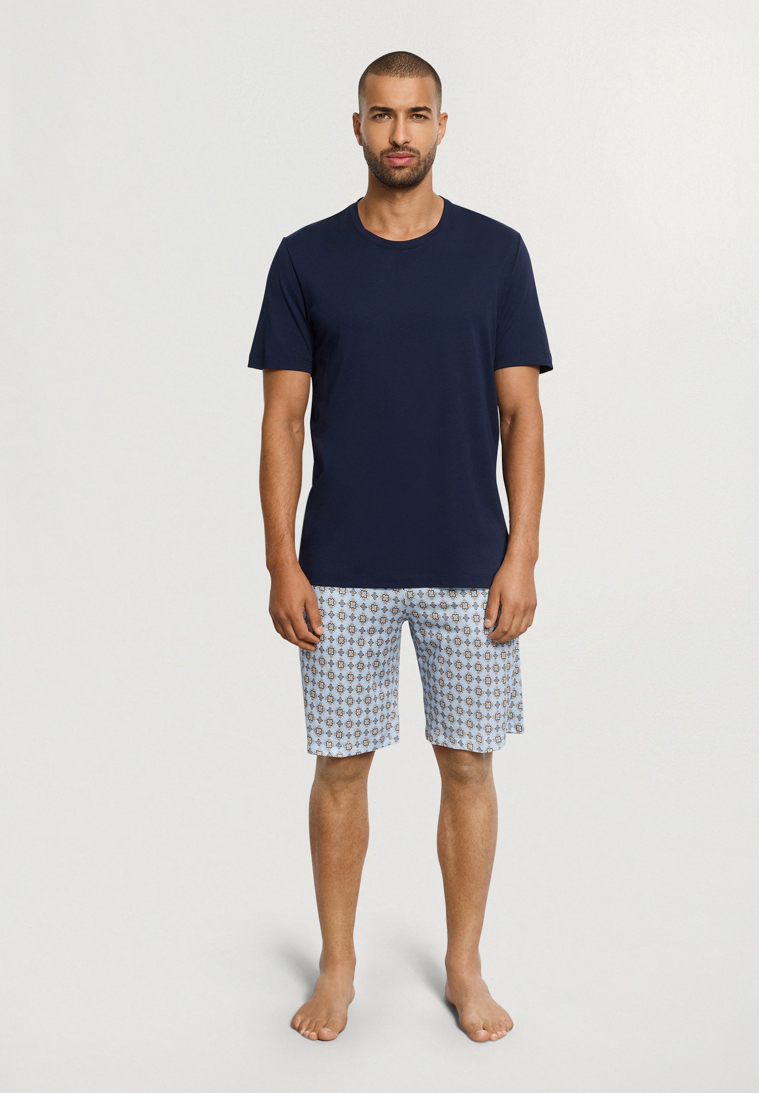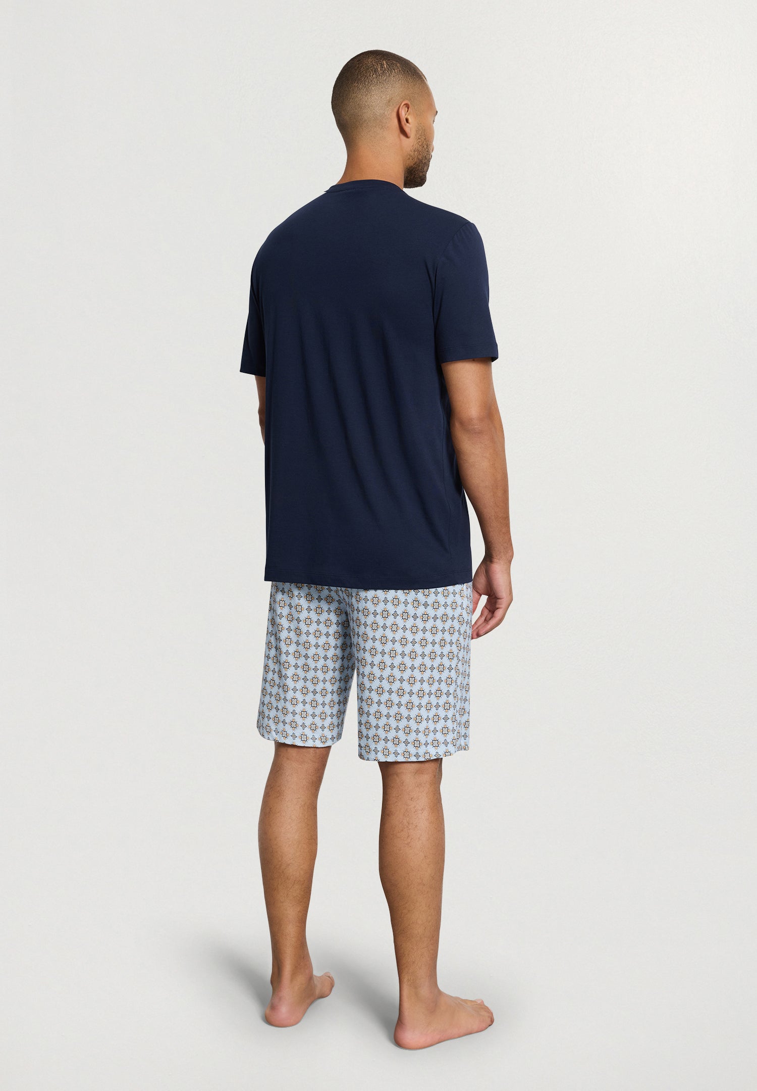 A micro pattern adorns the shorts of this short pajama set, made from eco-friendly TENCEL™ Modal and durable cotton. The solid-colored top has short sleeves and a comfortable crew neck. Two pockets and an elastic waistband on the shorts ensure maximum comfort. The single-jersey fabric is particularly lightweight and soft against the skin and impresses with its long-lasting softness, color brilliance, and skin-friendliness. With these pajamas, even a quick trip to the bakery on vacation or breakfast on the sun terrace will look stylish.