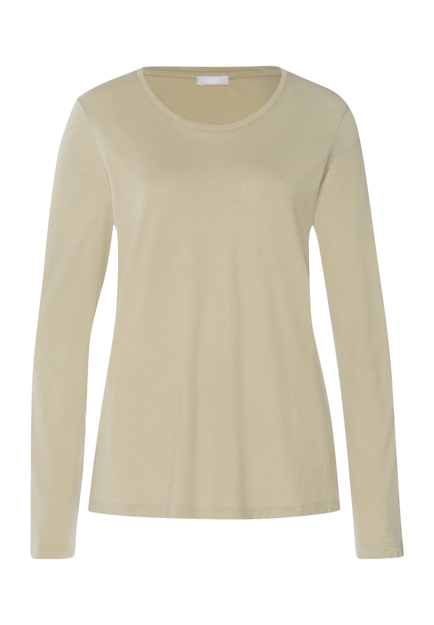 This women's long sleeve top from the HANRO Sleep & Lounge collection is of noticeably high quality – which ensures a special feeling of well-being at all times. The soft single jersey is made of cotton and TENCEL™ modal fibers with excellent properties. To round off that feeling of comfort, pair with bottoms from the same collection as well as with Natural Living or jeans.
