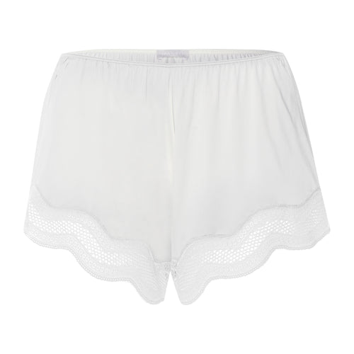 The airy, perforated lace on these summery knickers with a thin elastic waistband gently caresses the legs. The soft, graphic tulle lace hem is slightly rounded at the sides. The antistatic fabric is manufactured in our in-house production facility and feels velvety soft on the skin. The natural sheen of the flowing fabric makes these shorts an elegant companion when traveling, at the spa, or during leisure time. When paired with the matching camisole, these shorts become a modern pajama set that is ideal for warm nights thanks to the cooling effect of the viscose.