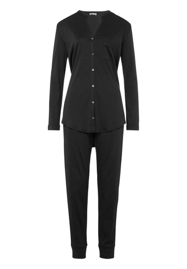 Elegant simplicity at its best, the Pure Essence Pajama is tailored from particularly soft, 100% mercerized cotton. Featuring a long, raglan sleeve, button front top, and stylish pants with covered elastic waist and tapered ankles, this pajama is the perfect understated sleepwear look.