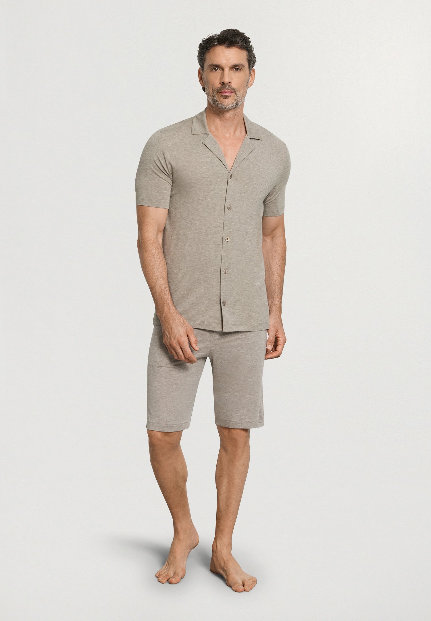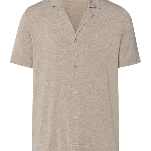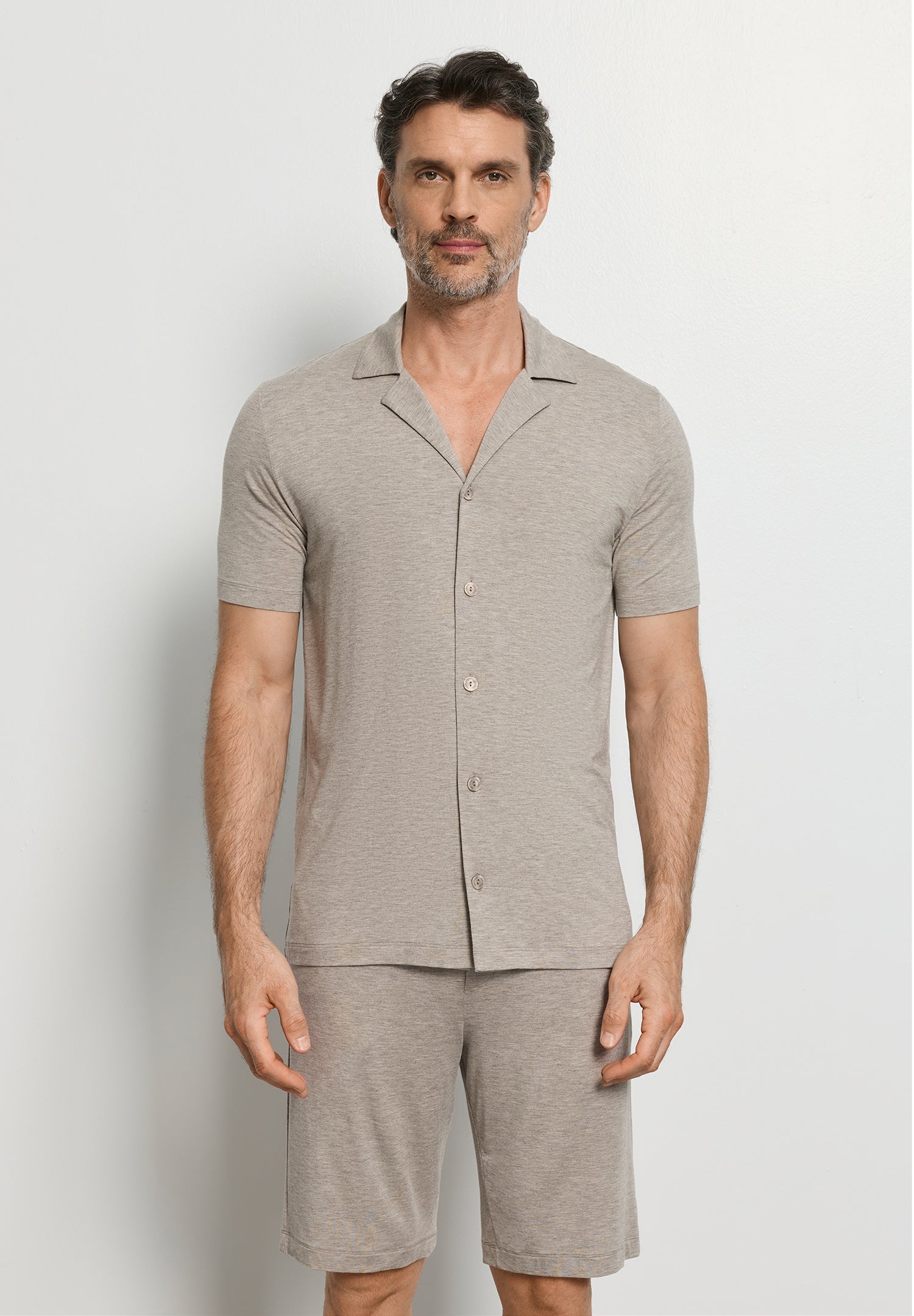 This extraordinary short-sleeved shirt is made of elastic viscose with an extra soft, flowing drape for high-quality look with maximum comfort. The full-length button placket and the elegant V-collar makes this modern favorite look like a light summer shirt at first glance. Temperature-regulating, skin-friendly and easy to care for are the advantages of the single jersey MADE IN AUSTRIA. Wear the contemporary style hybrid as daywear, nightwear or loungewear.