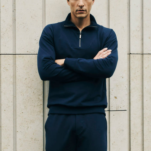 - Sustainable sweatshirt with half-zip collar