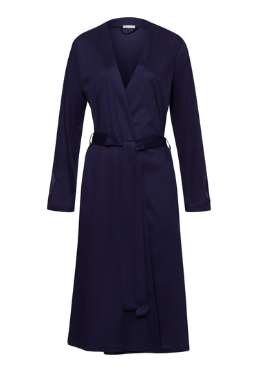 This robe from the HANRO Anne collection is for any woman who wants to make a fashion statement even when resting. The robe made of flowing cotton interlock is decorated with embroidery that was specially created by our designers and produced in Austria. This sets the standard for the highest quality nightwear and also provides pleasant relaxation during the day.