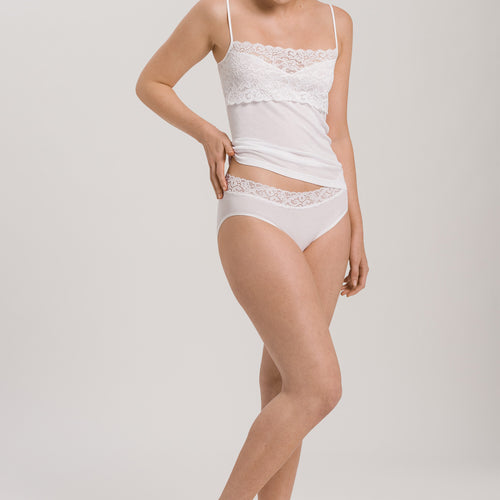 A classic look meets modern style with the HANRO Moments Hipster panty, part of the HANRO Moments Collection. Tailored from breathtakingly soft, long-staple 100% cotton, mercerized for sheen and comfort, this hipster panty features a low rise waist trimmed with pretty French lace for a custom fit and perfect pairing with low-cut jeans or hip hugging fashions.