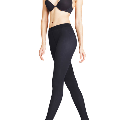 These semi-opaque sheer tights feature a subtle ribbed texture. A beautiful classic, they pair perfectly with casual looks as well as business outfits.