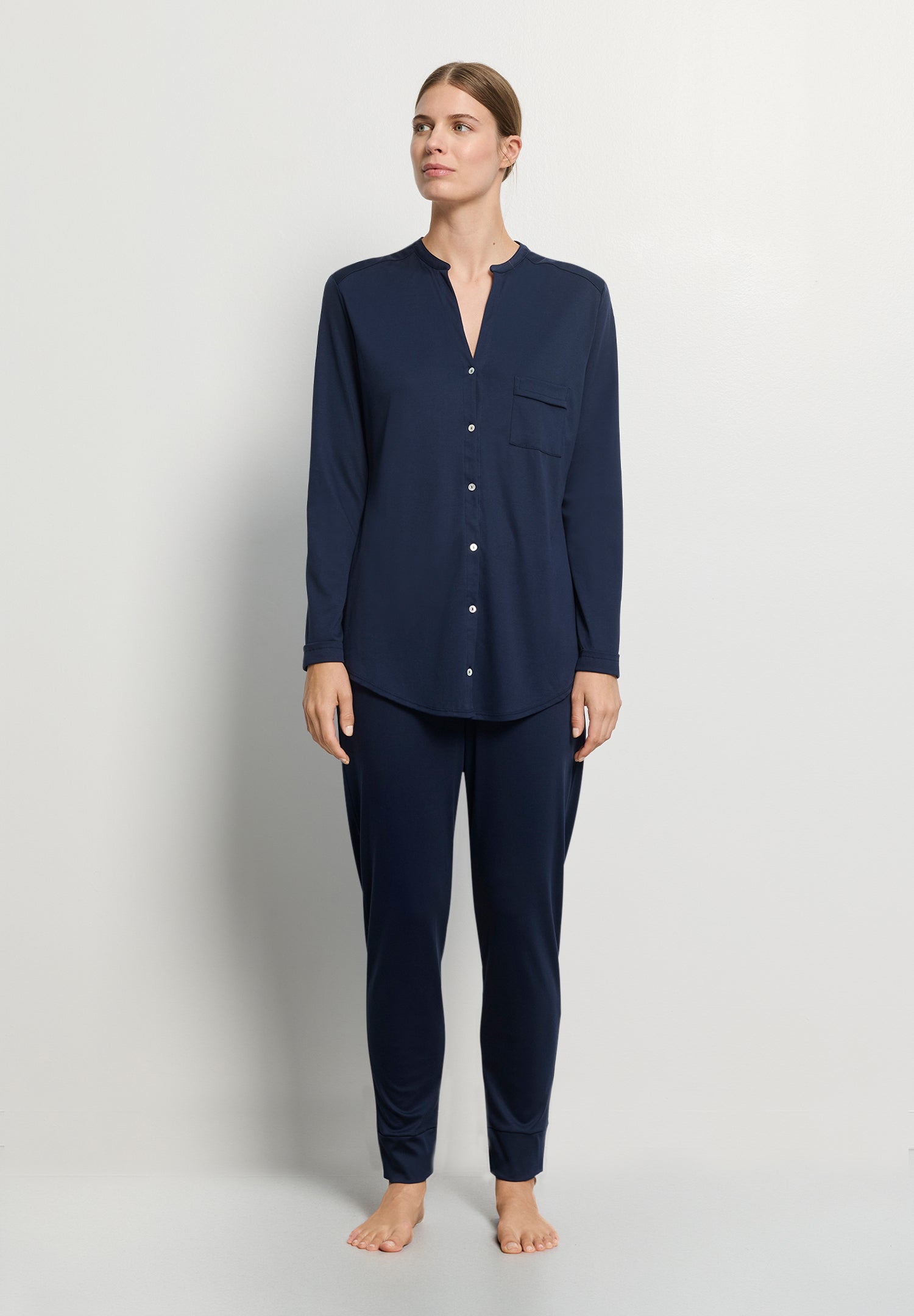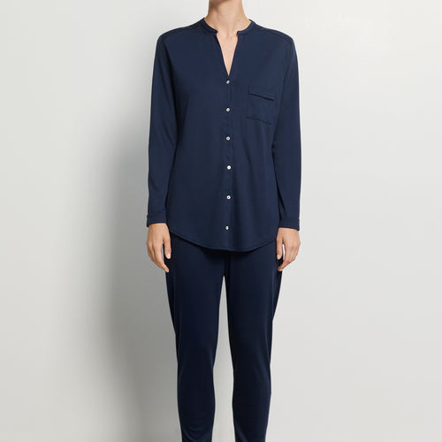 Elegant simplicity at its best, the Pure Essence Pajama is tailored from particularly soft, 100% mercerized cotton. Featuring a long, raglan sleeve, button front top, and stylish pants with covered elastic waist and tapered ankles, this pajama is the perfect understated sleepwear look.