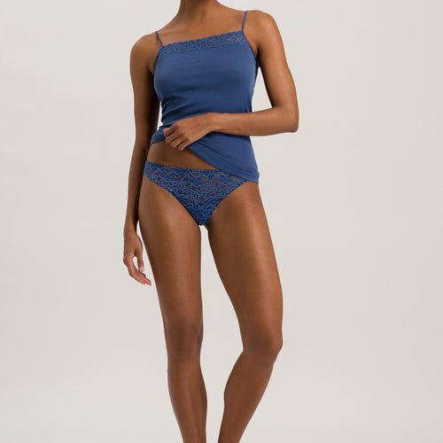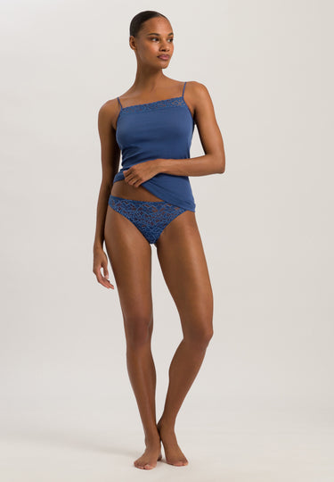 Feminine and versatile, the HANRO Moments Camisole Top features a sleek, flattering design trimmed with French lace along the neckline and spaghetti straps adjust in the back with nickel-free, metal hardware, for a touch of everyday elegance. Tailored from 100% Mercerized long-staple cotton, this camisole top also boasts no side seams for comfort and a smooth profile beneath clothes.