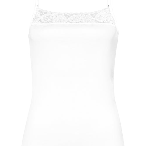 Feminine and versatile, the HANRO Moments Camisole Top features a sleek, flattering design trimmed with French lace along the neckline and spaghetti straps adjust in the back with nickel-free, metal hardware, for a touch of everyday elegance. Tailored from 100% Mercerized long-staple cotton, this camisole top also boasts no side seams for comfort and a smooth profile beneath clothes.