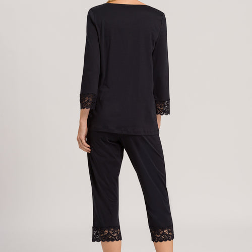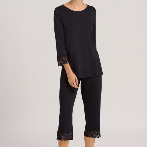 Elegant and feminine, the HANRO Moments crop pajama is tailored from 100% mercerized cotton for incredible nighttime comfort. This special set feels wonderful on the skin. Trimmed with lavish lace, feel your best in this special sleep piece or wear it to lounge.