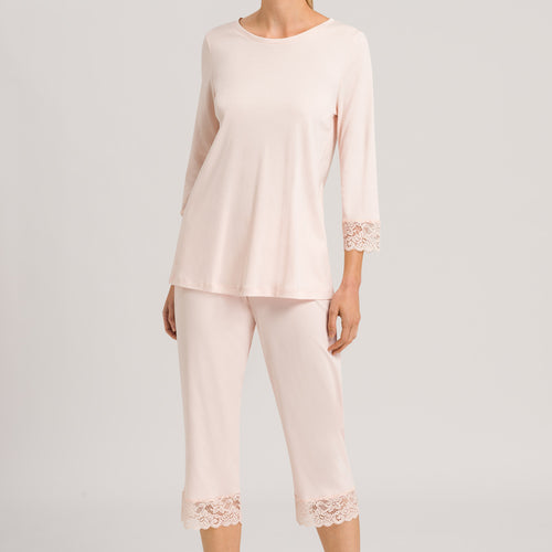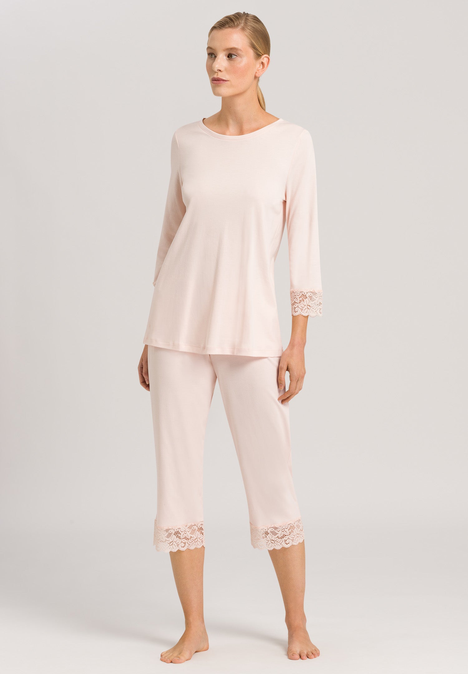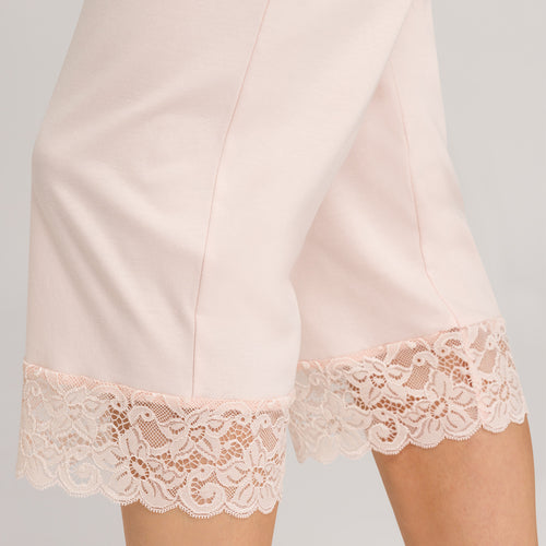 Elegant and feminine, the HANRO Moments crop pajama is tailored from 100% mercerized cotton for incredible nighttime comfort. This special set feels wonderful on the skin. Trimmed with lavish lace, feel your best in this special sleep piece or wear it to lounge.
