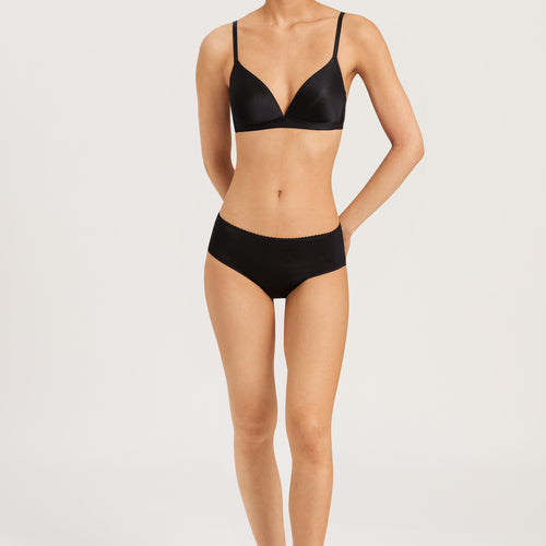 With its simple elegance, the seductive styles from Satin Deluxe are perfect for all occasions. The luxury, flowing Viscose and Lycra feels silky smooth and incomparably luxurious on the skin. The special appeal of this seductive bra offers multifunctionality and perfect fit. Offering softer straps and stylish elements in matte gold, it is also embossed with the HANRO logo. Padded hook back closure. The soft cup T-shirt Bra offers padding for shape without using an underwire.