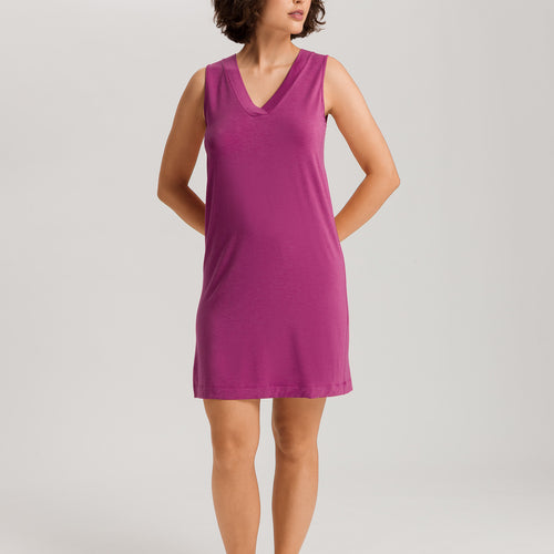 Casual and modern, the HANRO Champagne Tank Gown combines effortless comfort with modern style. Tailored from an innovative blend of viscose and elastane for stretch, this gown features a sporty V-shaped neckline with broad, flat trim. Wear it as loungewear or sleepwear, this gown and features an inverted pleat at the back and falls to mid-thigh; for the perfect balance between coverage and ease-of-movement.