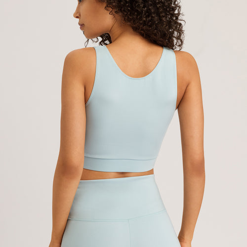 The Balance crop top is modern and dynamic, flexible and functional. Ease of movement, breathability, and transfer of moisture makes this top an easy choice for light sports. Pairs beautifully back to the leggings in the collection.
