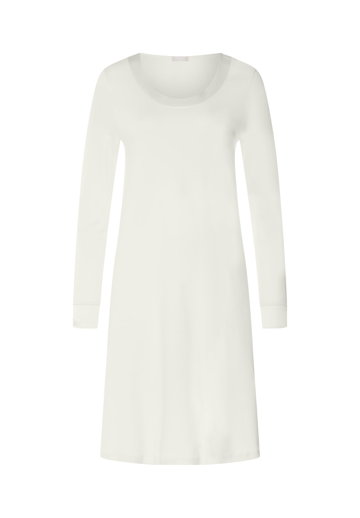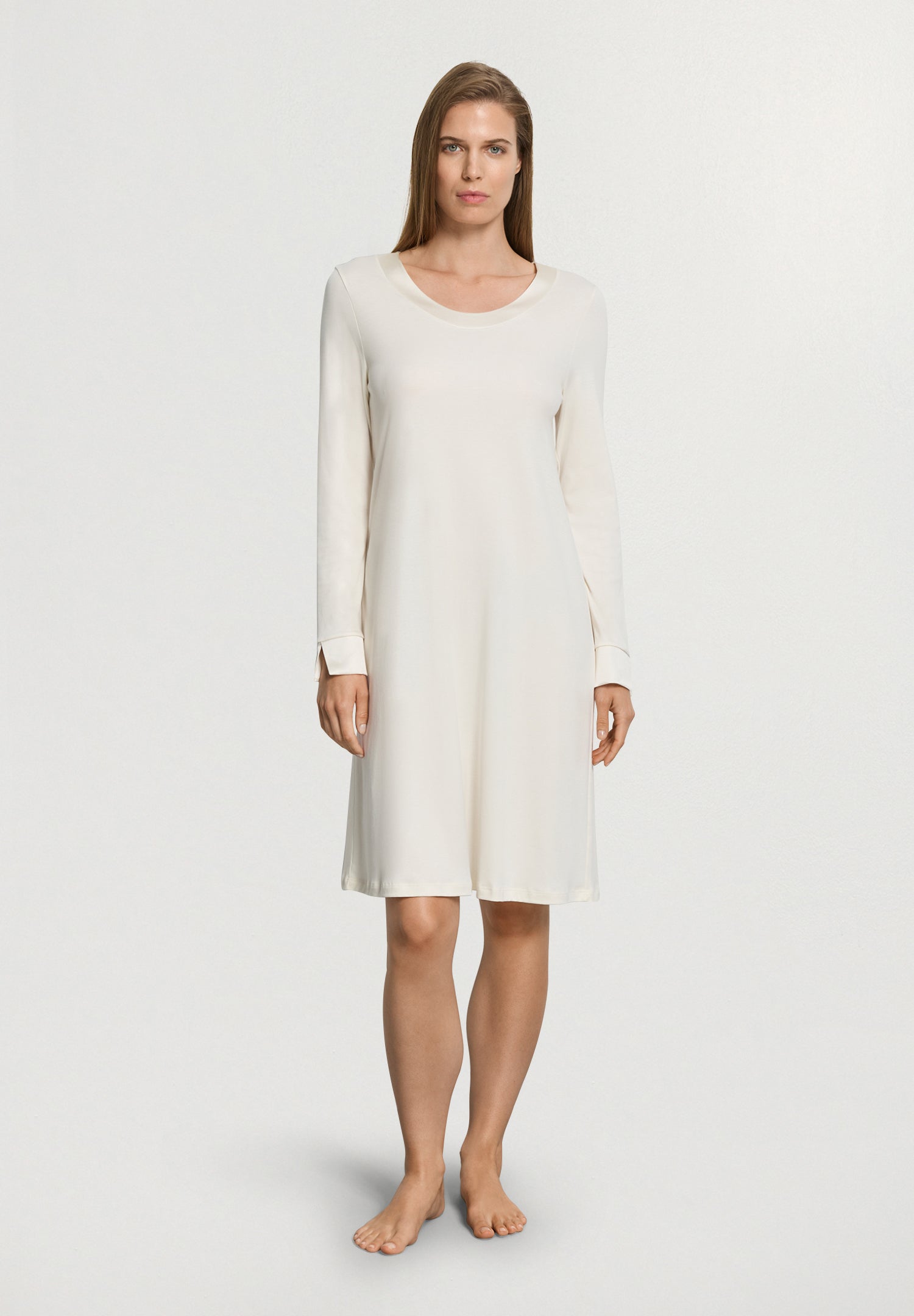 This elegantly flowing nightgown envelops your body in a soft and incomparable feel. With its subtle sheen, the feel-good 100% cotton material impresses with unparalleled moisture management and durability. Long sleeves keep you pleasantly warm even in summer, and the knee-length cut gives you maximum freedom of movement while you sleep. The refined fabric is produced in-house and is edged with silk trim along the crew neck and sleeve cuffs. This pure premium style is simply perfect for fans of timeless sleepwear!