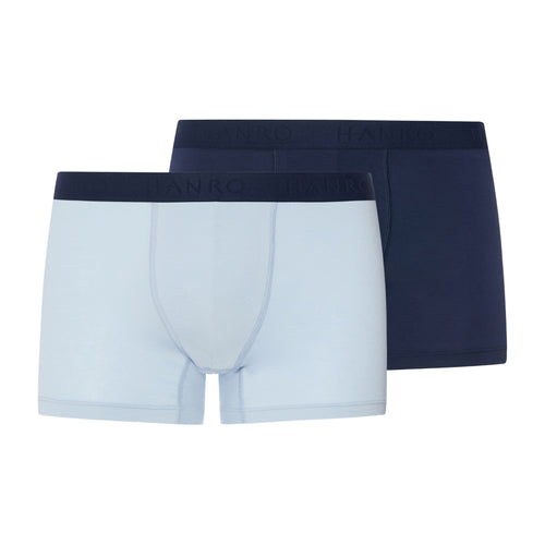 Simple and sporty, the HANRO Cotton Essentials 2-Pack Cotton Boxer Briefs are a great Basic that can be worn every day. This men’s no-fly boxer brief is now available in new bright colors and basics, and is tailored from fine knit mercerized cotton blended with a touch of elastane for stretch. Slim fit, in a classic trunk design with a lined pouch and soft elastic waistband embossed with the HANRO logo.