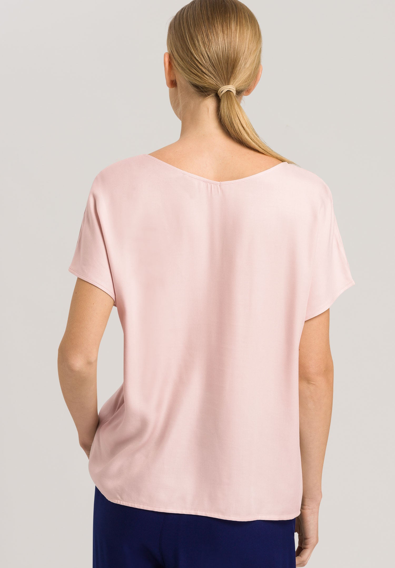 Modern styles for versatile summer outfits with the Favourites collection. Ideal for warmer days, these pieces are perfect for the home office, in the city, lounging, or on vacation. Tailored from a smooth woven viscose, the short sleeve top features a rounded neckline and a boxy fit. Pair it with the crop pants for an easy outfit.