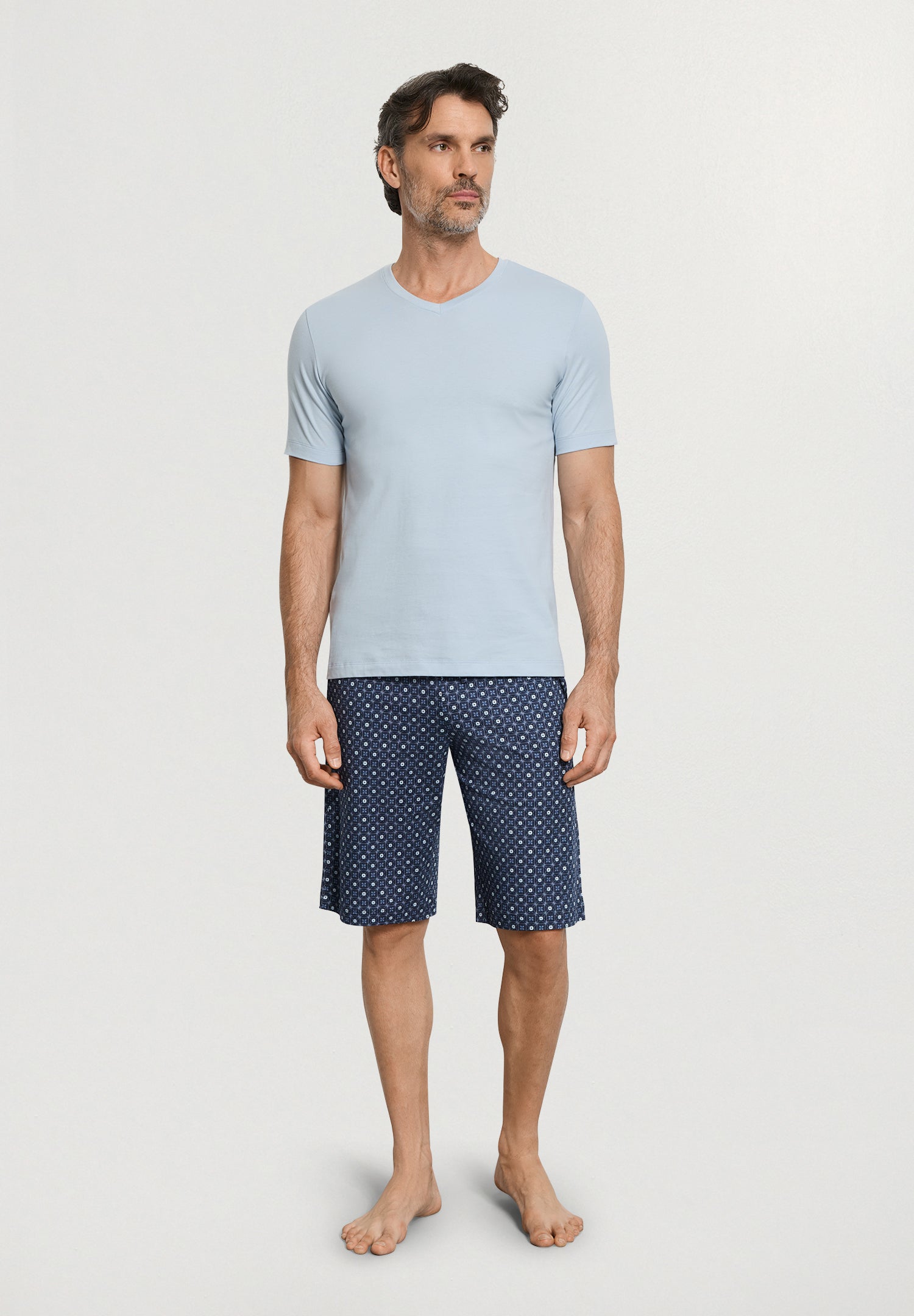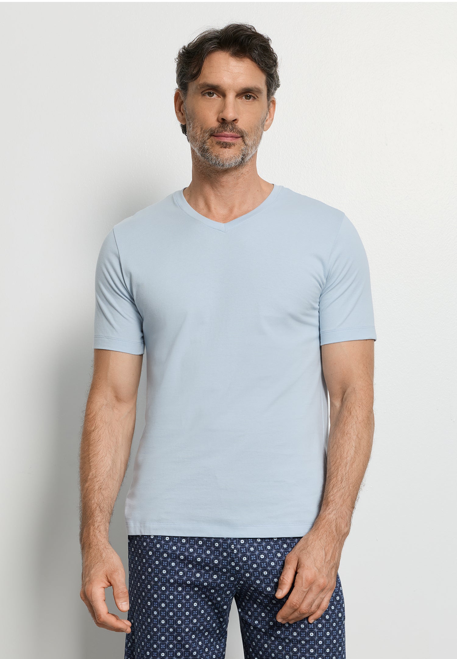 Living is a collection of fashionable must haves. A group of versatile, casual styles that are perfect for relaxing, working from home, traveling or being active. Endless options that are perfect for mix & matching and even layering. The short sleeve v neck shirt is made from opaque single jersey cotton with a smooth feel making it easy to combine with every outfit.
