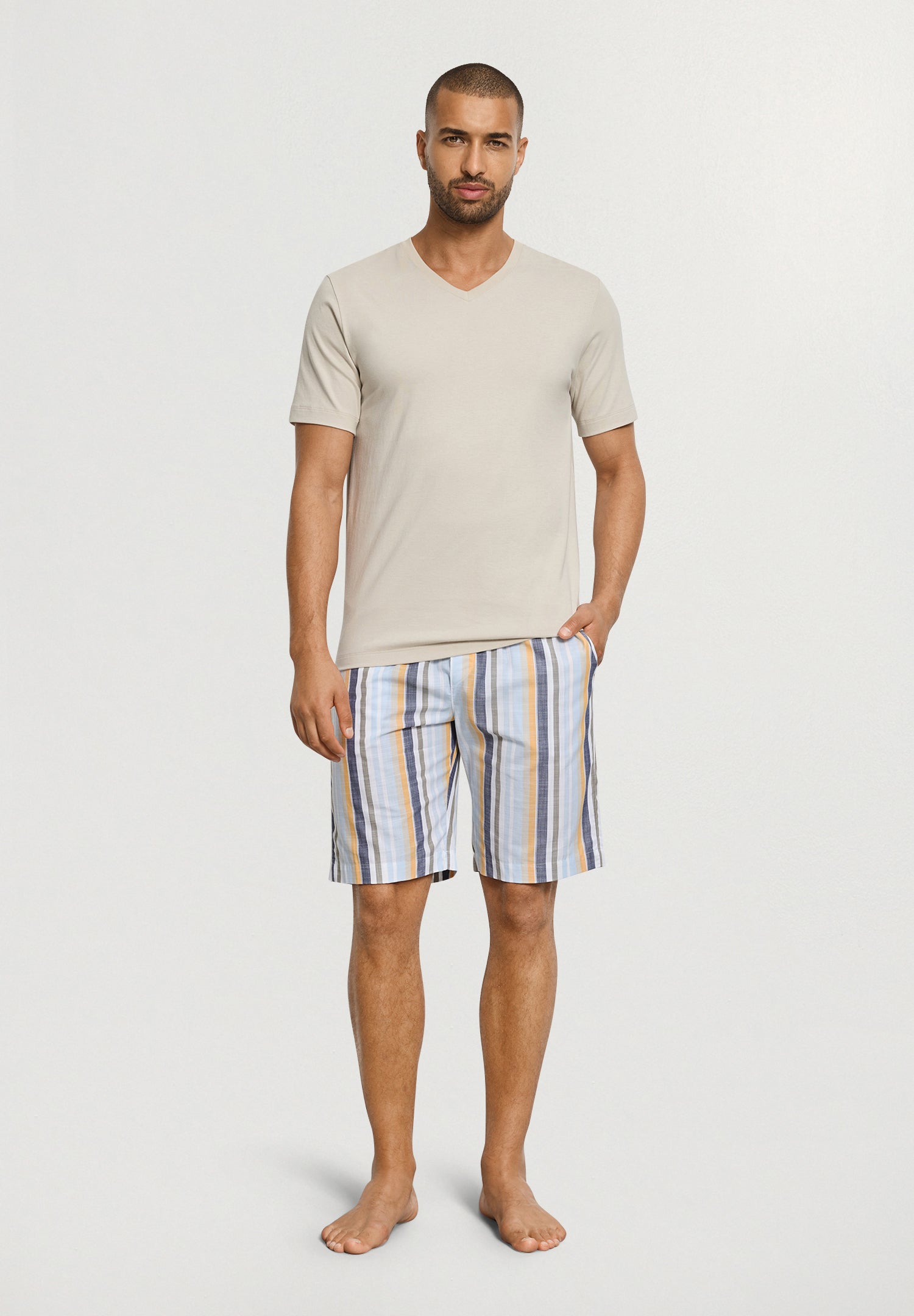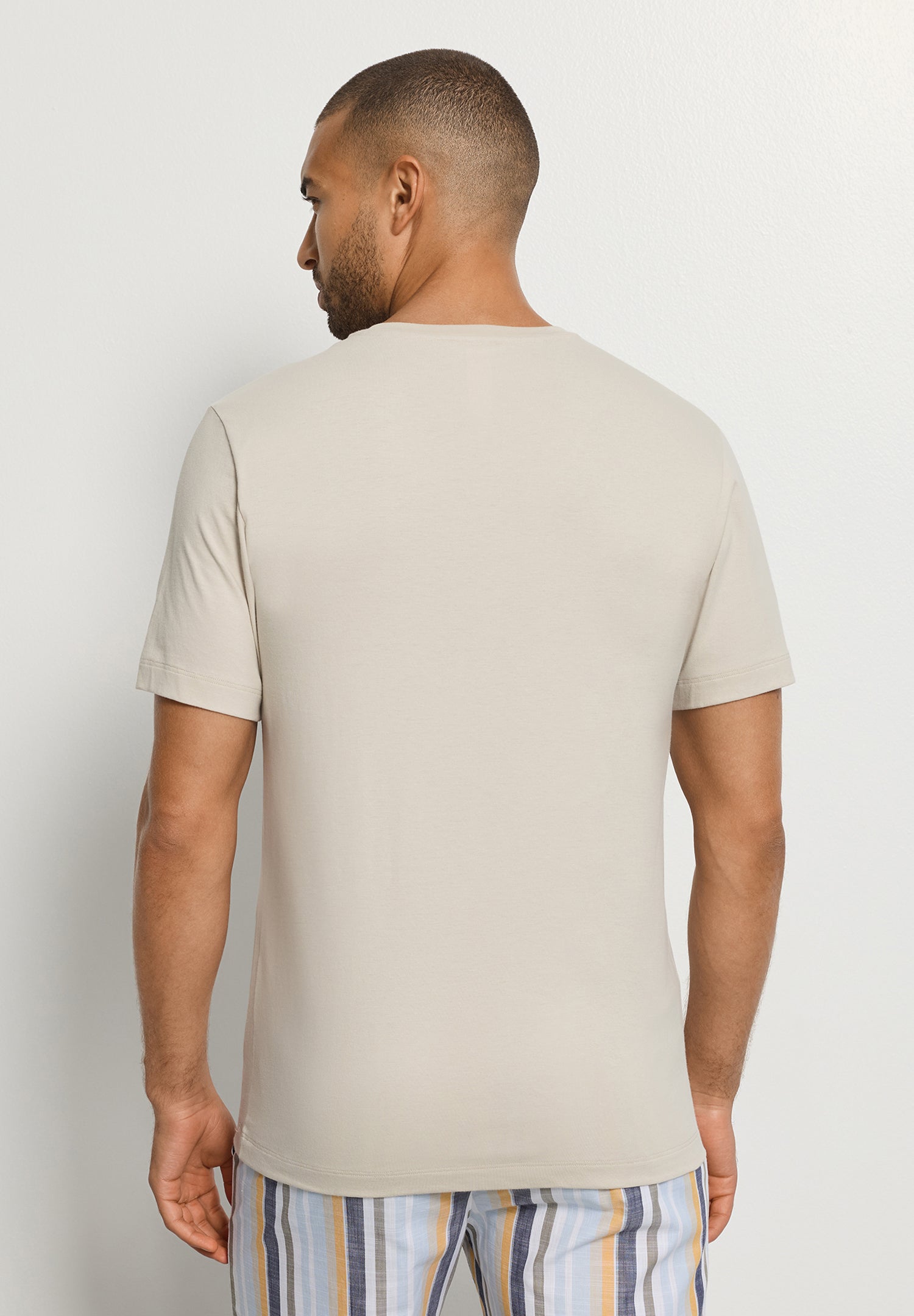 Living is a collection of fashionable must haves. A group of versatile, casual styles that are perfect for relaxing, working from home, traveling or being active. Endless options that are perfect for mix & matching and even layering. The short sleeve v neck shirt is made from opaque single jersey cotton with a smooth feel making it easy to combine with every outfit.