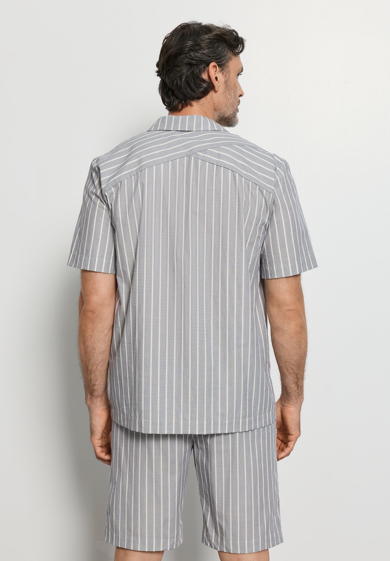 Dayjamas allow us to go straight from bed to the beach and on to the bar. This modern reinterpretation of the tracksuit makes the short-sleeved shirt especially appealing when paired with pants or shorts. Classic menswear elements such as a collared neckline with lapels and a full-length button placket give this lightweight, airy short-sleeved shirt a stylish finish. Crafted from exclusive poplin, the crease-resistant MADE IN AUSTRIA fabric is 100% cotton, ideal for summer, and features fine stripes with a subtly woven 3D texture.