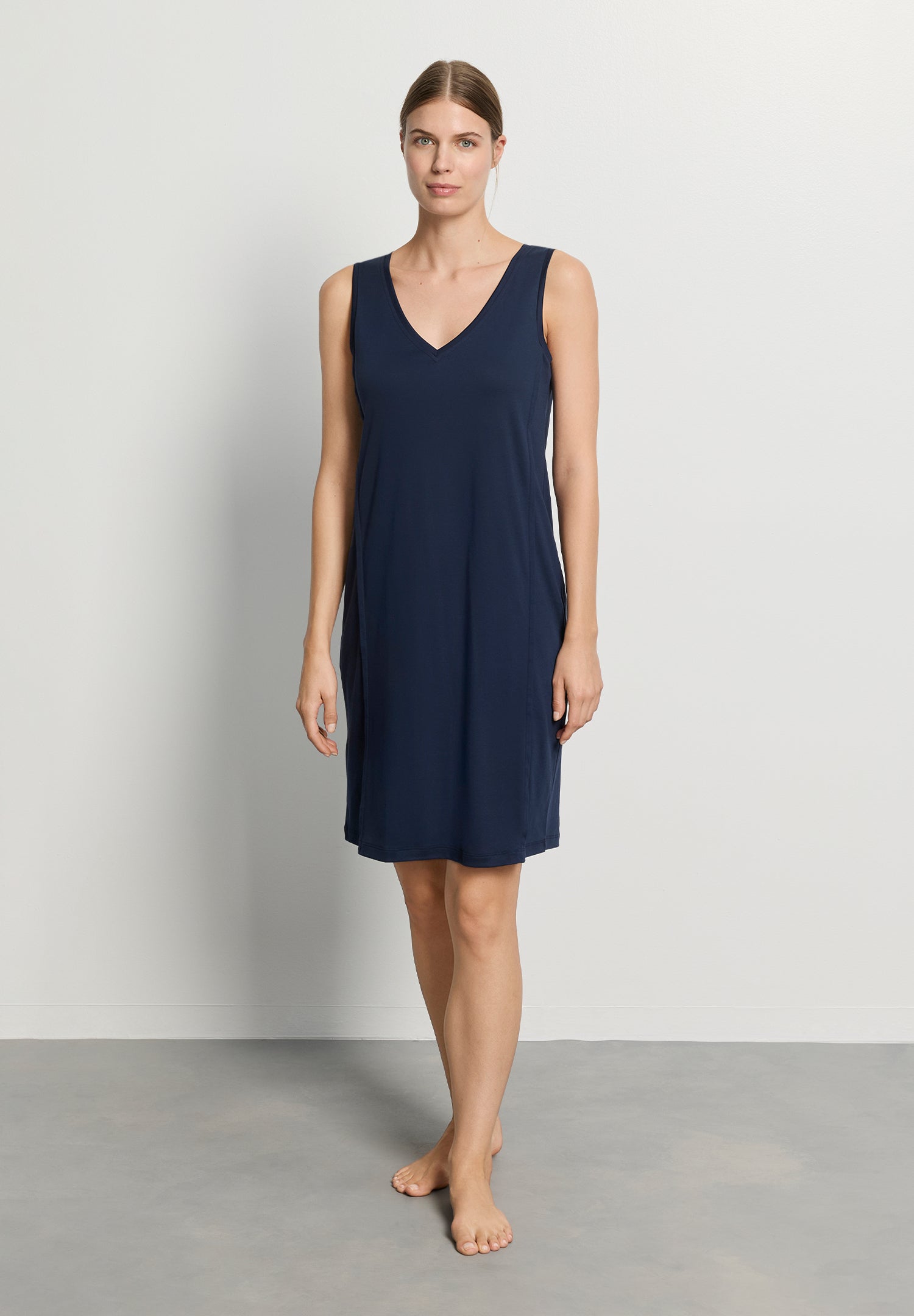 The Pure Essence Tank Gown is tailored from soft 100% mercerized cotton. This understated gown features a v-neck style neckline, a classic silhouette, and sleek seam lines for a simple, yet elegant sleepwear look.