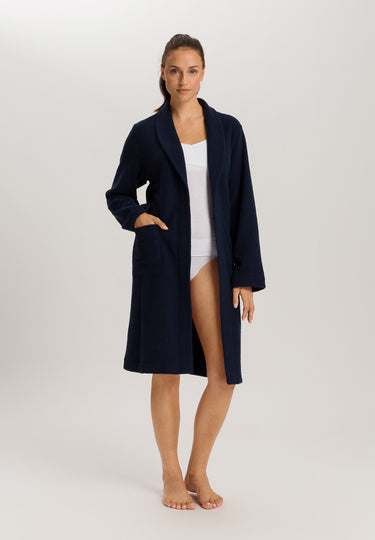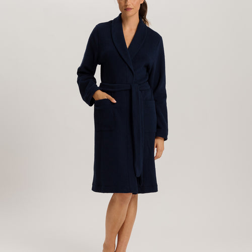 Ideal for chilly mornings, the HANRO Plush Wrap Robe is tailored from a delightfully snug cotton-blend Terry knit, with a sublimely soft brushed cotton-blend interior. Featuring a classic shawl collar, practical belt tie and side patch pockets, this stylish robe effortlessly combines incredible comfort with functional practicality.