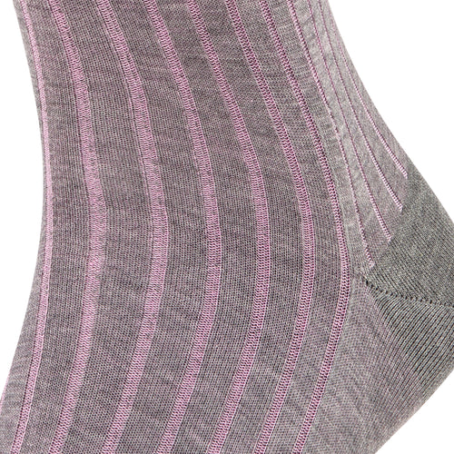 Elegant, discretely patterned business sock made of mercerised cotton. With this design, the second colour remains in the shadow of the actual colour. Pressure-free, hand-linked toe seam. Reinforced stress zones ensure optimum durability. Easy care.